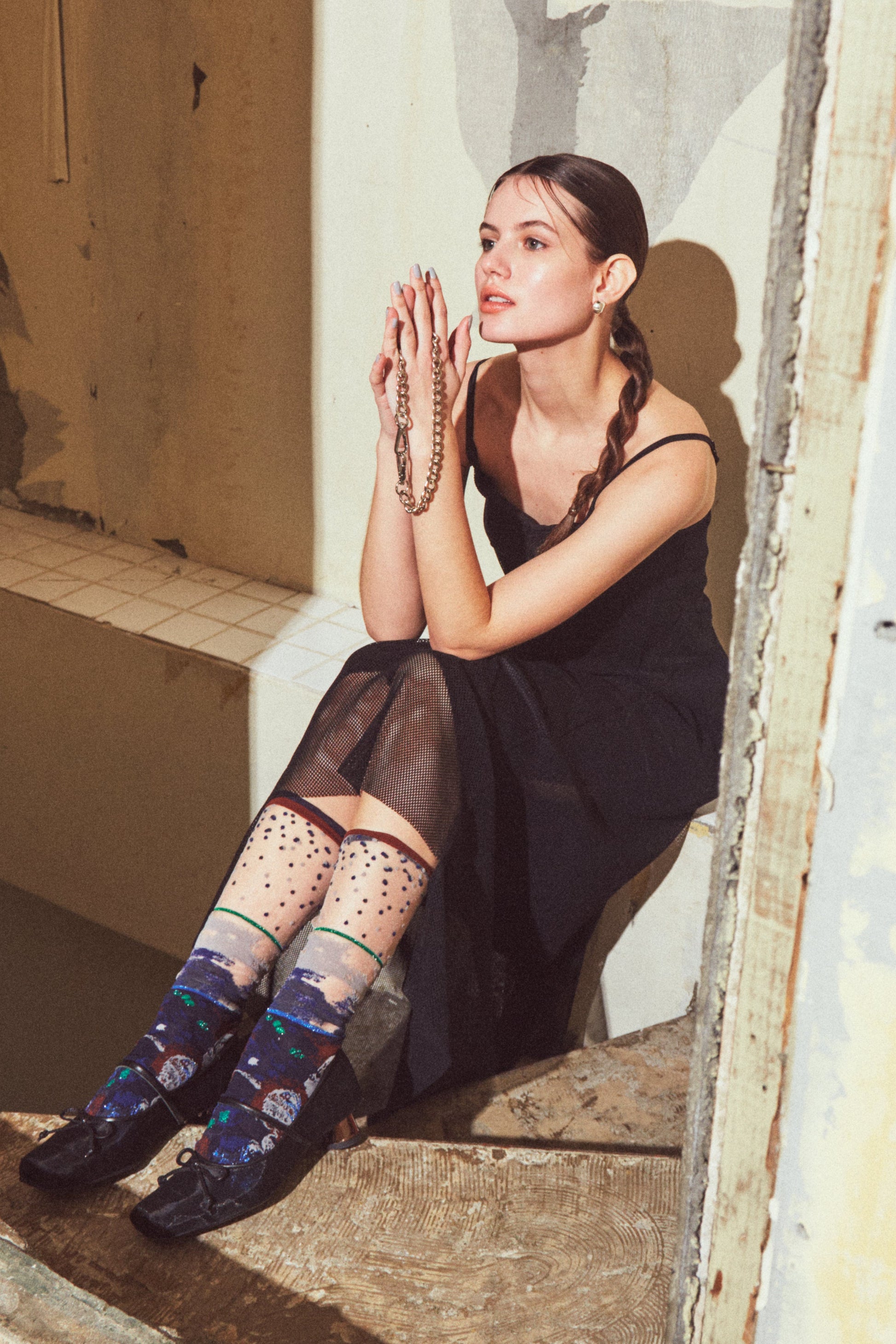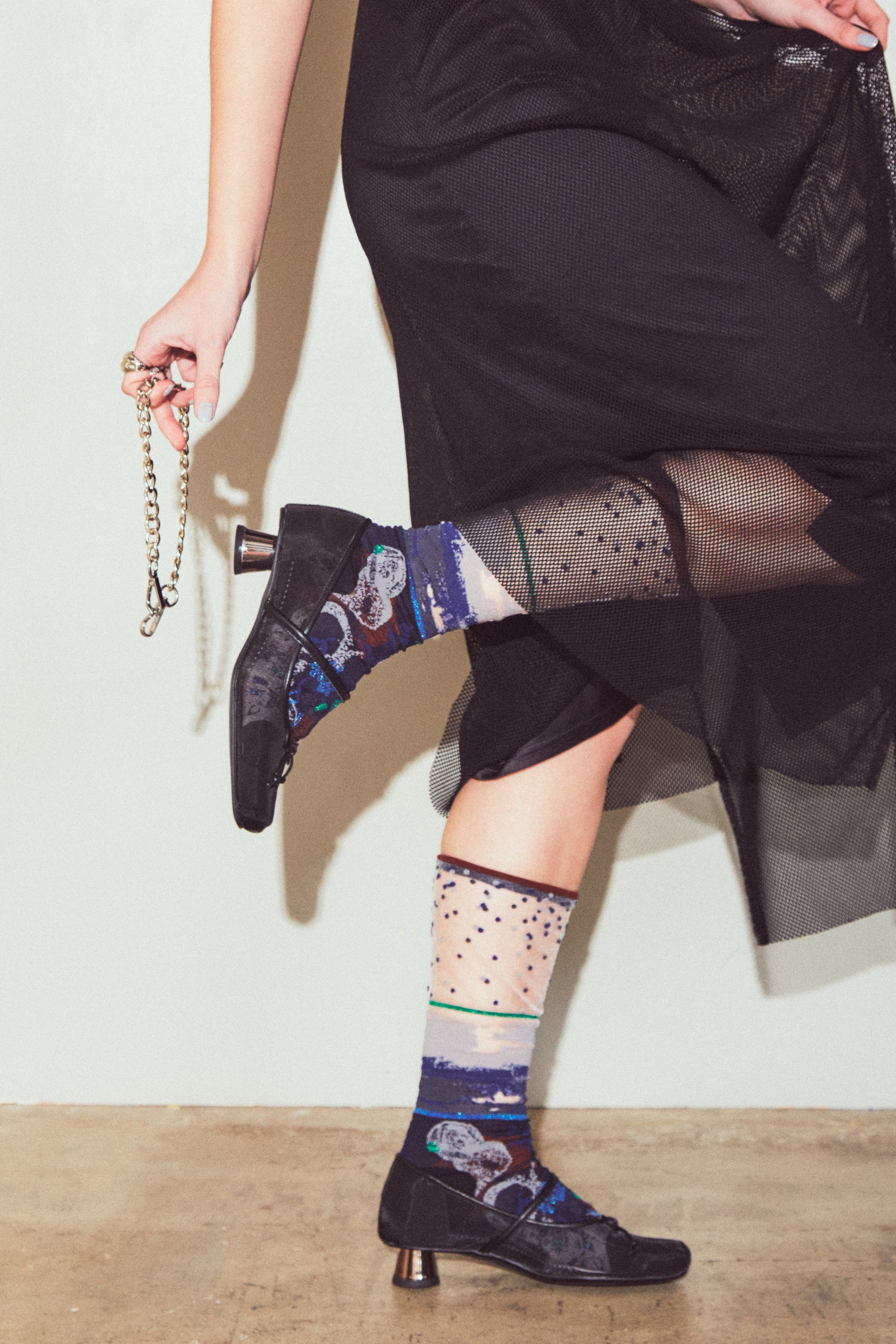 繊細なシアー感が足元に抜け感を生み、春夏の装いを上品に引き立てます。