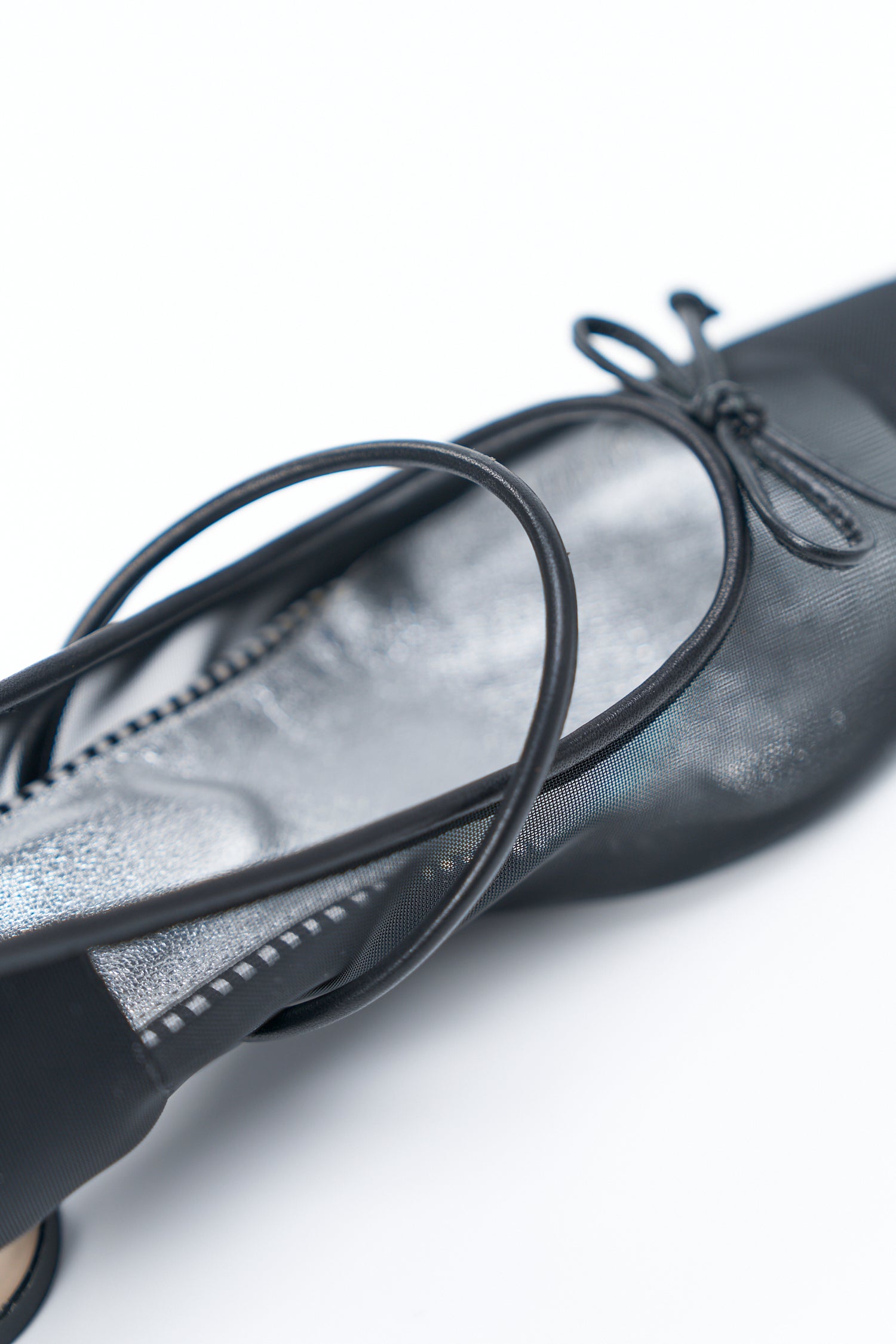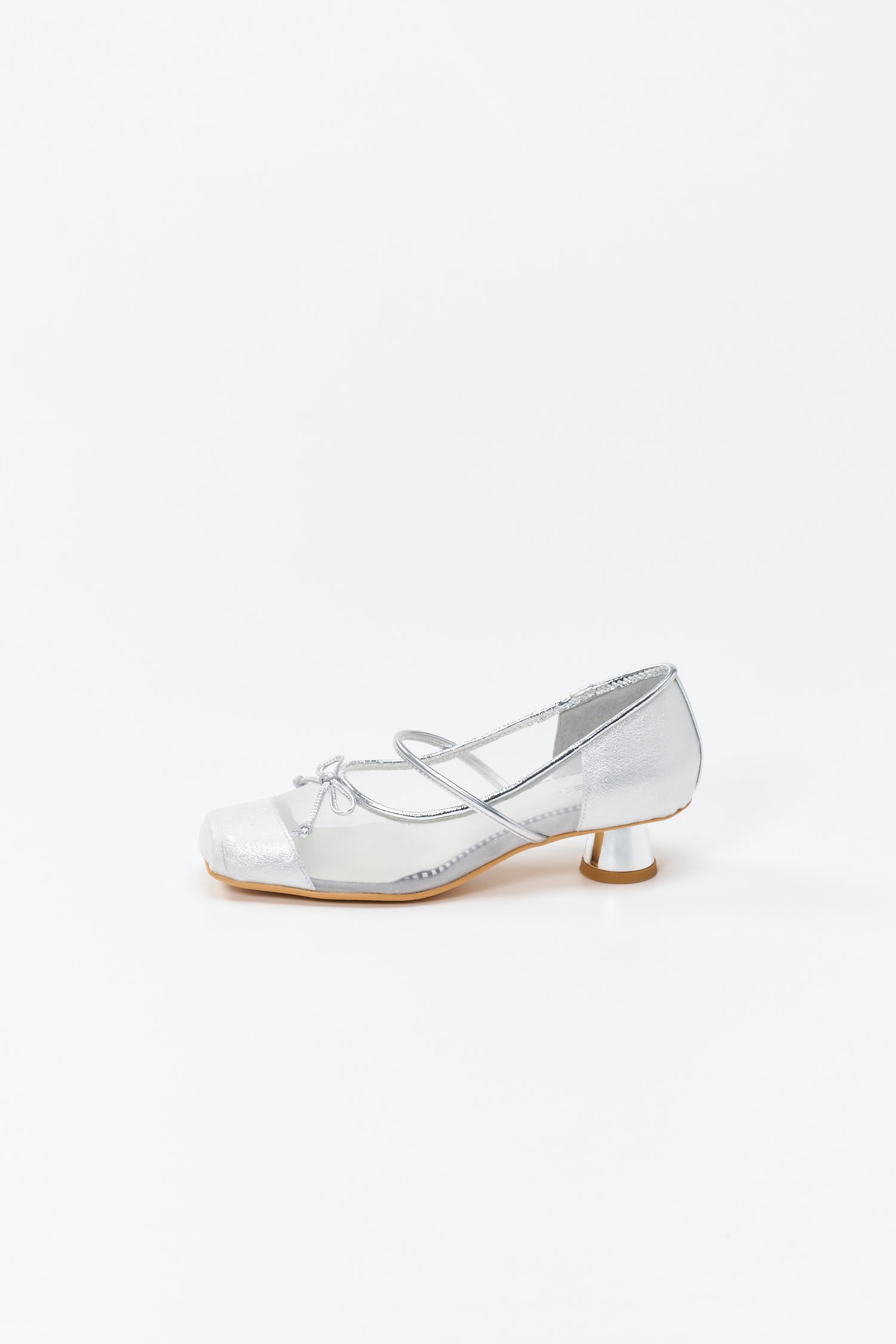 透け感のあるチュール素材をアッパーに使用した、軽やかで女性らしい一足〈Clione〉。