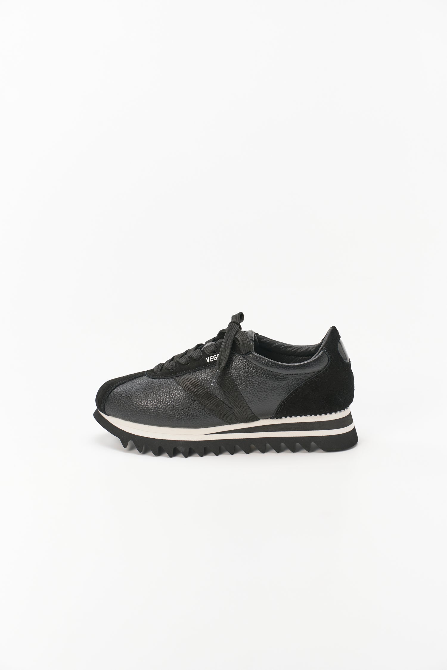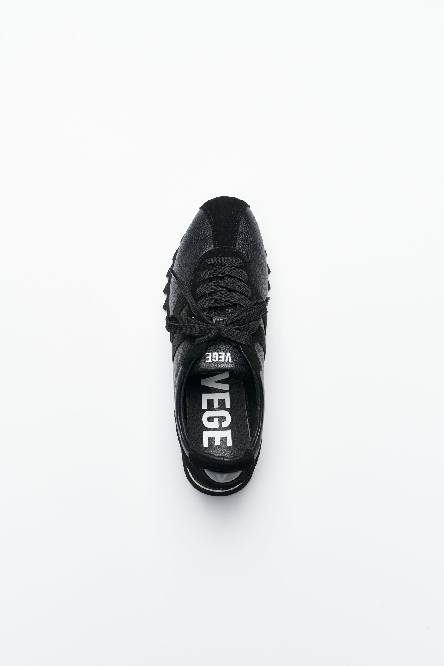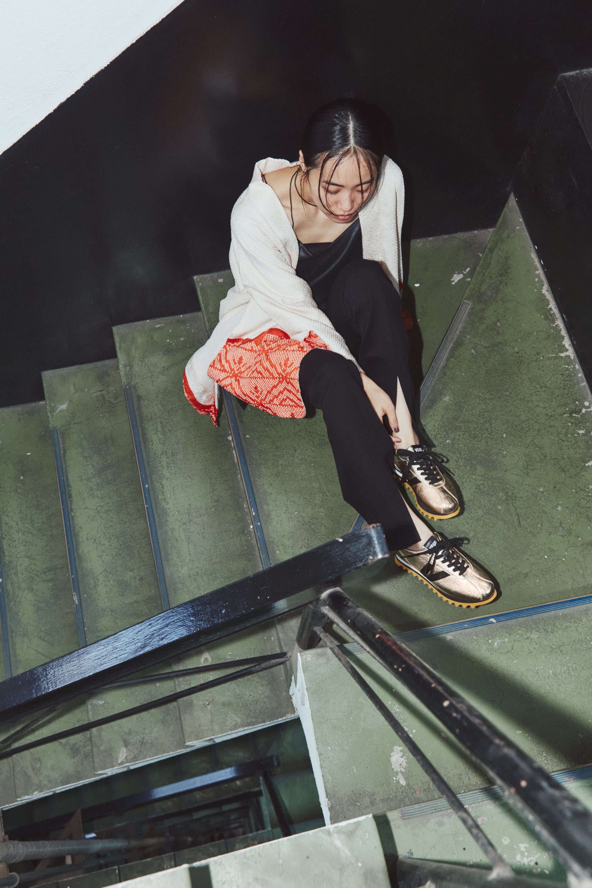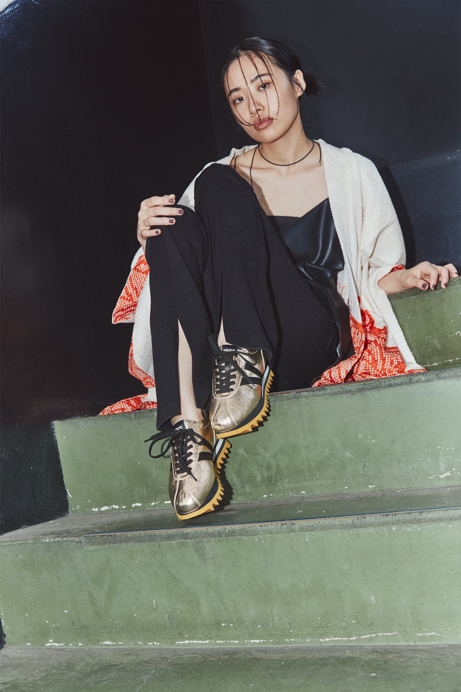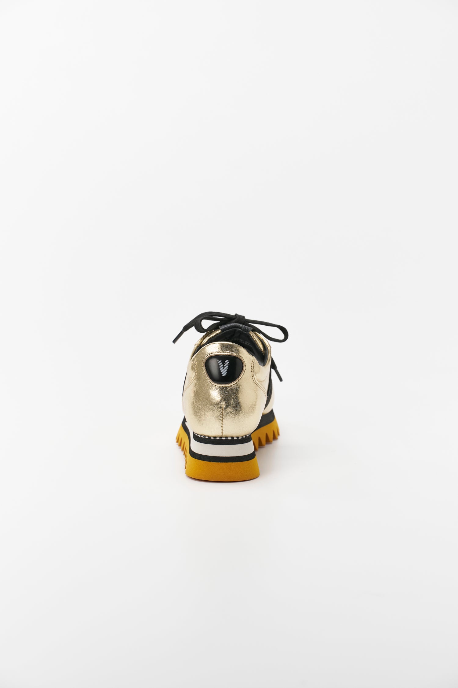 艶やかなゴールドのレザーに、ガムソールのようなマスタードイエローがVEGEらしい“クセ”を効かせた一足。