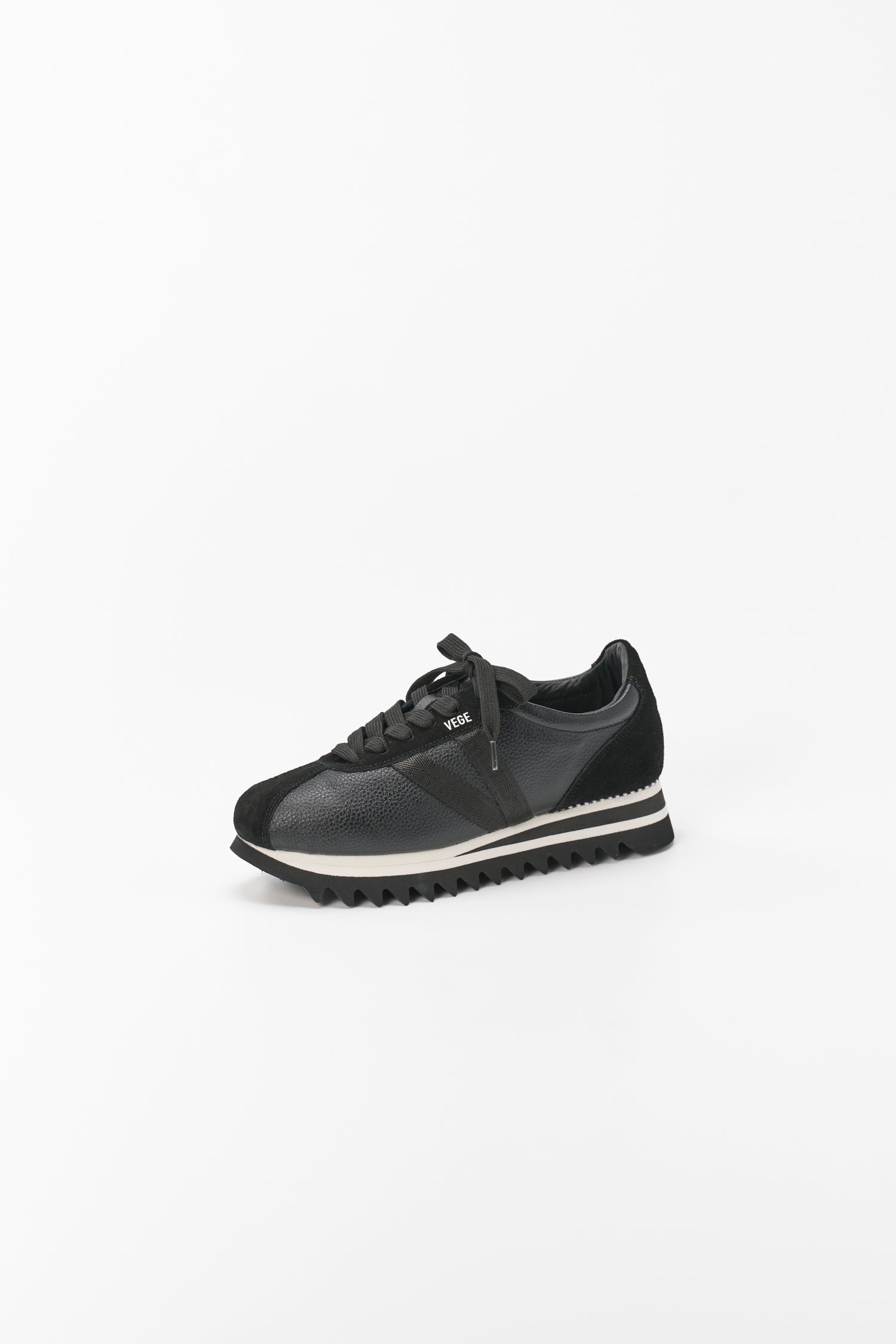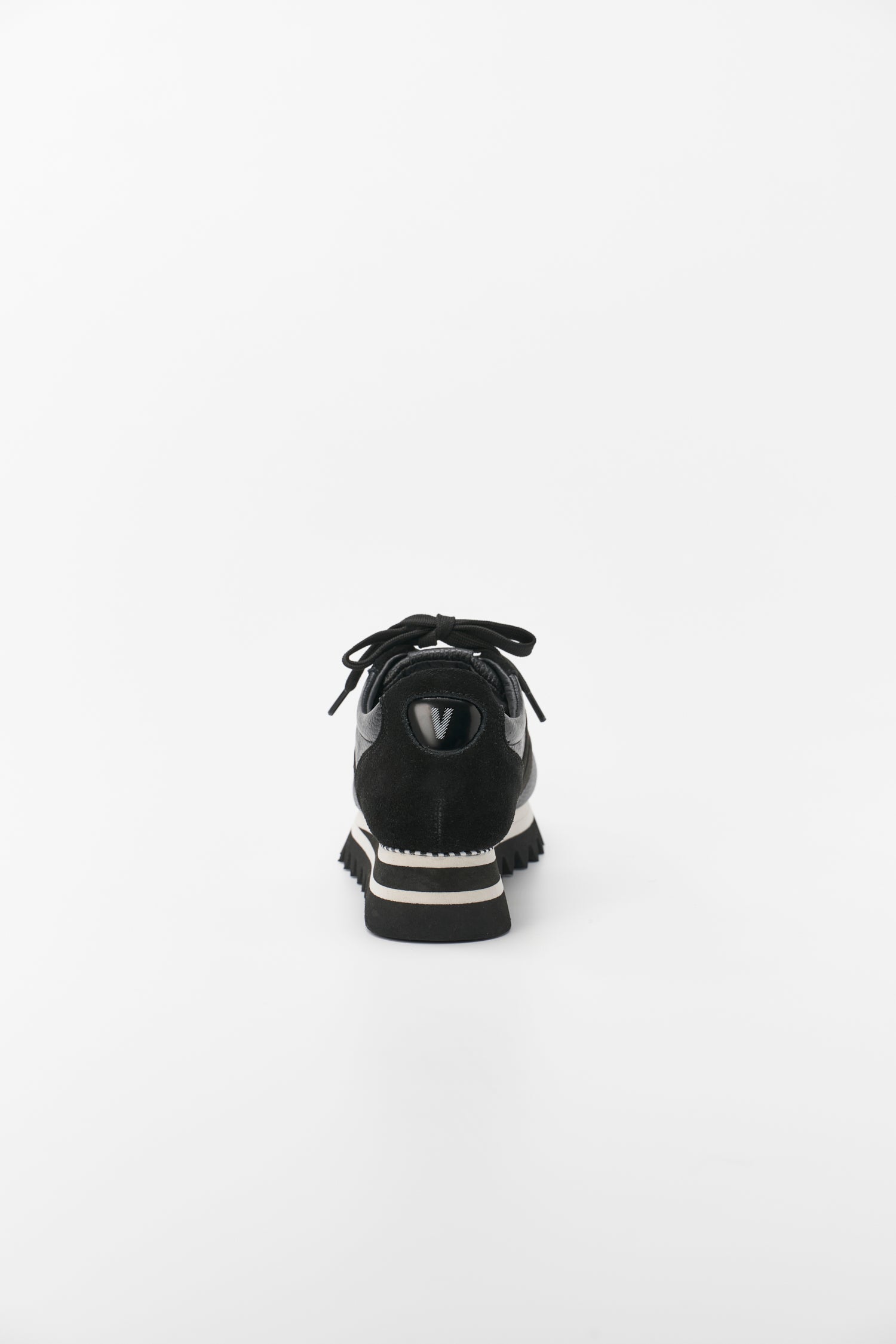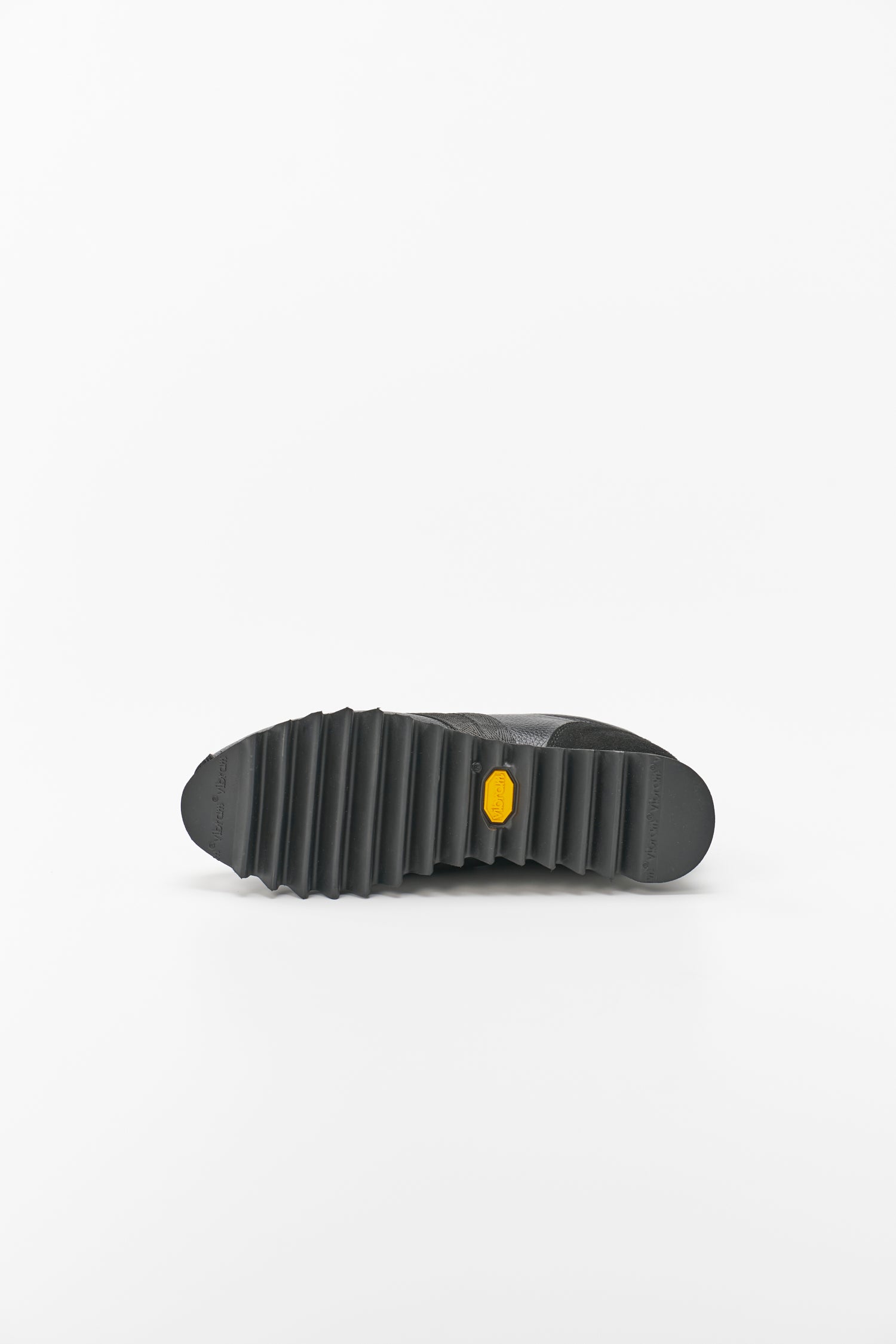 シュリンクレザーとスエードを組み合わせた、ニュアンス感のあるオールブラック。